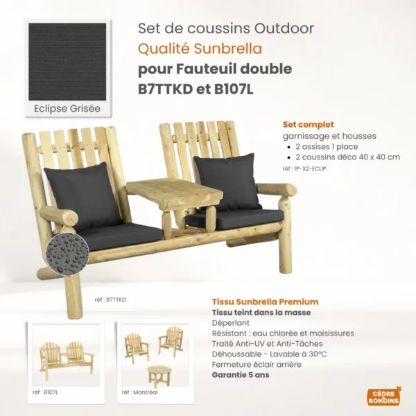 | Taille des Coussins | 1 Set 1 place pour Fauteuils 1 place, 2 Sets 1 place pour Fauteuils double (B7TTKD – B107L – Montréal), 4 Sets 1 place pour Salons S3 et Anticositi |
