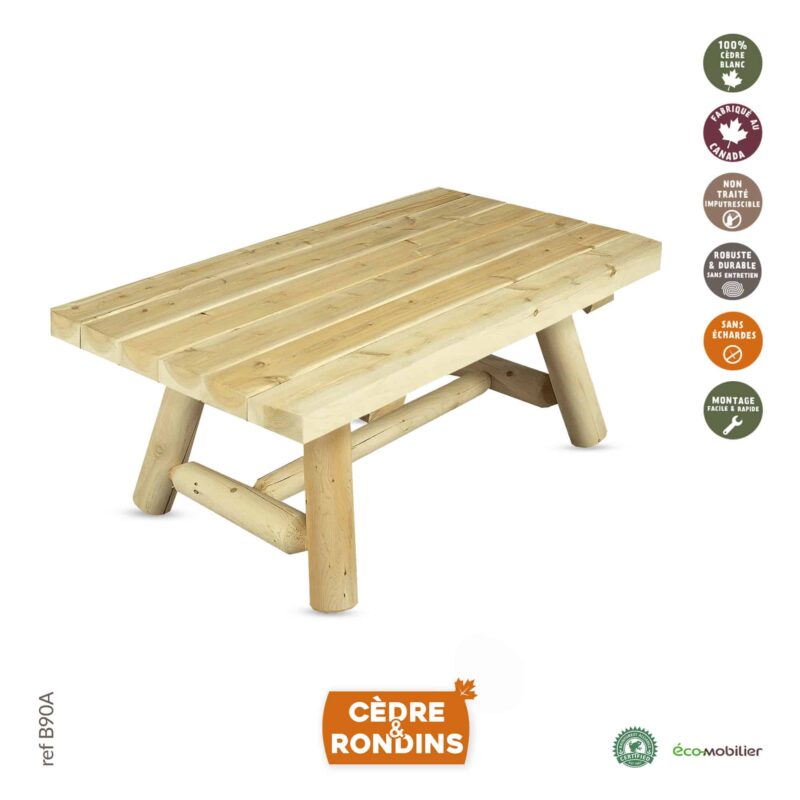 Le bois, matériau privilégié pour sa robustesse et son charme naturel, est ici façonné dans une conception rectangulaire épurée, il s’intègre avec grâce à divers décors. Sa résistance aux intempéries en fait un meuble adaptable tant à l’intérieur qu’à l’extérieur.