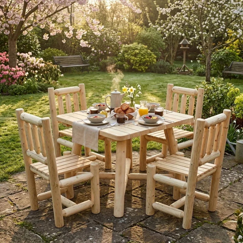 Nous sommes fiers de vous informer que notre ensemble de table et chaises en bois est conçu selon des pratiques de fabrication respectueuses de l’environnement et contribuent à la préservation des écosystèmes forestiers.